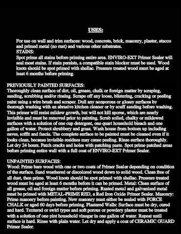 Spot prime all stains before priming entire area. ENVIRO-EXT Primer Sealer will